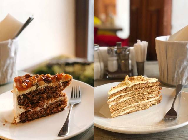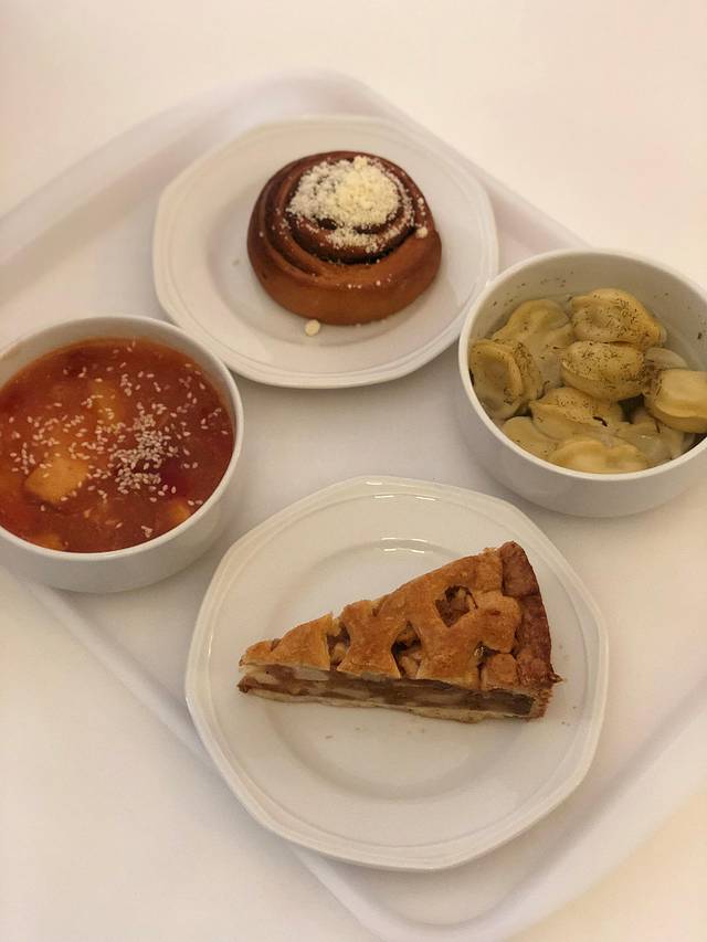 冬宫这边出口也有餐厅的,不贵,这里全部680卢布。除了最后的拿破仑非常好吃,其他3个就一般吧。