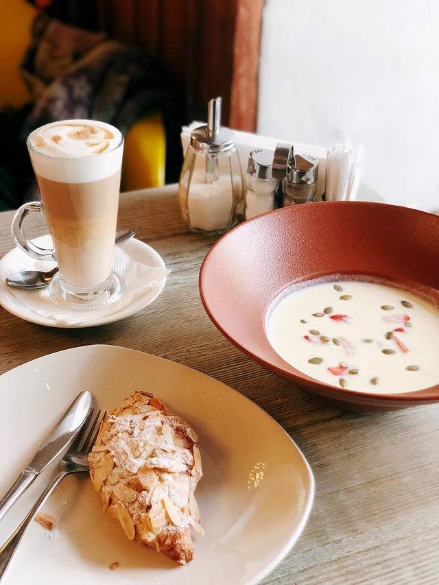 这个是鱼子酱+额外买的黄油饼托——可以往里面放奶酪、酸奶、鱼子酱等等~确实这样搭配很好吃!不过饼最后剩下一半没吃完!