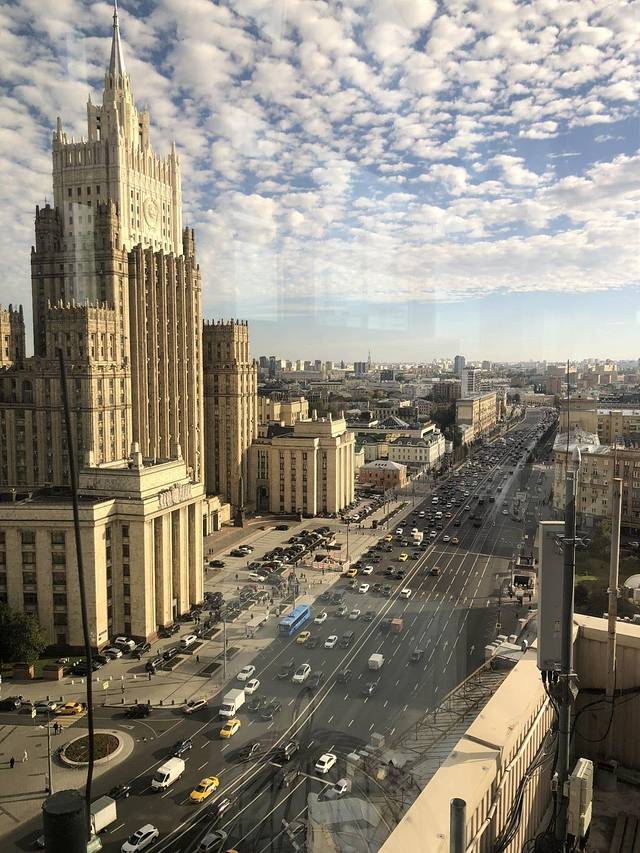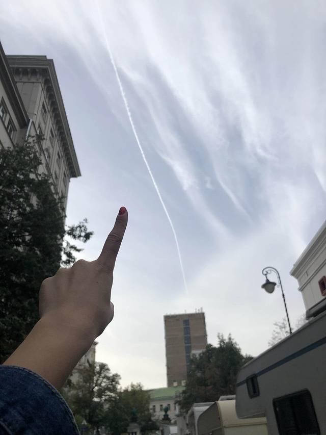 飞机尾迹。在莫斯科那3天,随便抬头都能看到。