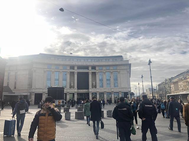 Tip:图上就是排队时拍的,红场内这种宽阔平坦的石头路,不能走(除非有人行道标记),否则有卫兵会吹口哨提醒你,挥手让你走上旁边人行道。回来百度了也没有查到为啥要这样。