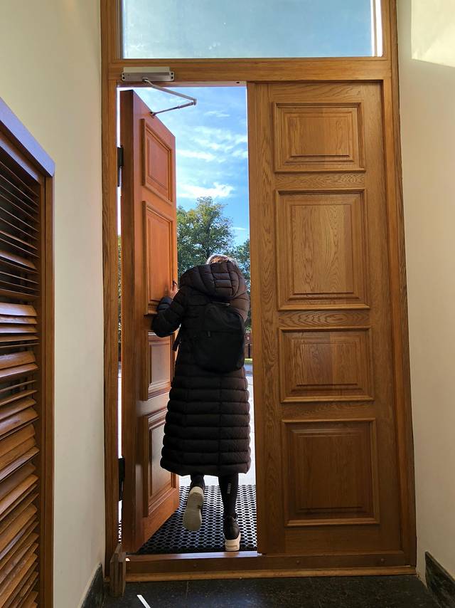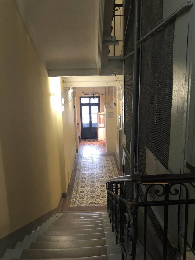准备出门!门口有个传达室,有一位女士值岗。忘了给这边电梯拍照——是美国老电影那种~好古老的。