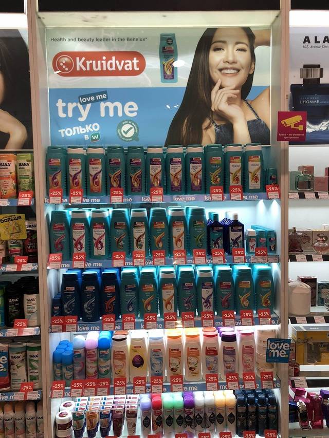 半道上看到了一家Л'Этуаль化妆品连锁(俄罗斯Top2之一),谷歌地图是叫做L'étoile,很多大牌摆放得像开架货~现场绿标签的物品全部买一送一。但是走了一圈,稍微有点名气的单品比北京日上免税都贵。