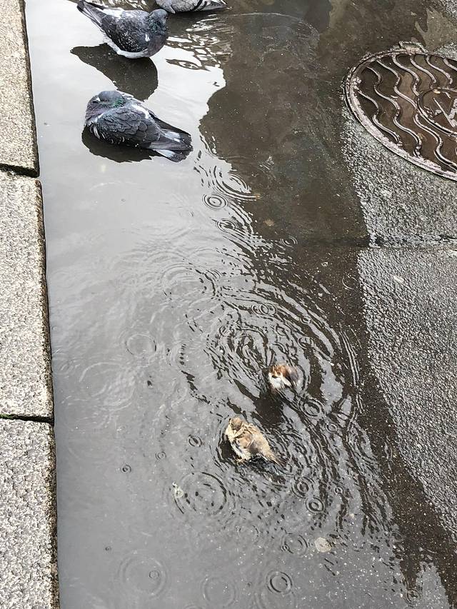 小公园~ 地上随意走一段都有胖鸽子在走动~