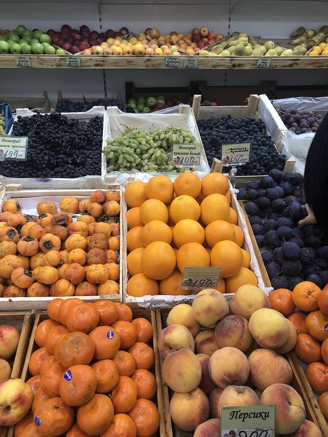 按公斤计算的水果,这一家多数比国内贵一丢丢,西梅(像黑李子的中间右边的)倒是便宜。最后买了青提+西梅。