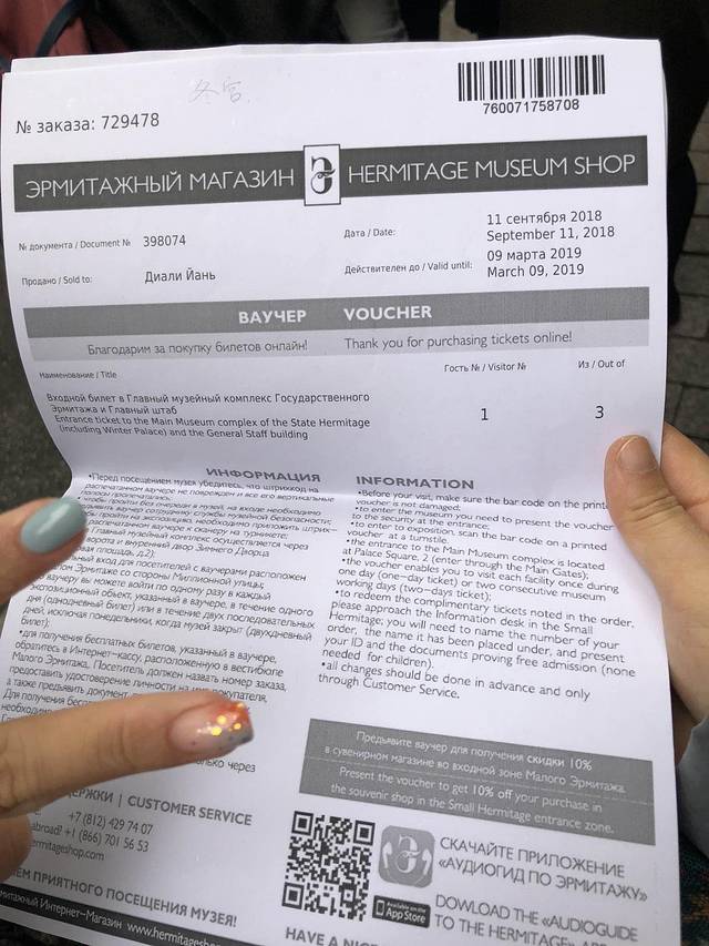 打印的票被扫一下二维码就能进去了。俄罗斯旅游中文网定的,一张票加约100人民币服务费。图上小册子还是厨子花100卢布买的。