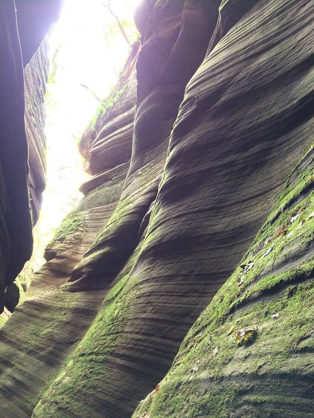 如果是中午12点左右到达,第一选择是去桦树沟,驱车进景区,行驶18公里,有指示牌,右手边岔路开过去。此时阳光直射进谷底,奇异的岩石、绿色的苔藓,在阳光的渲染下五彩斑斓,美轮美奂。