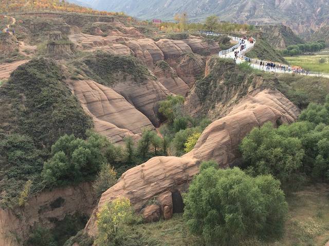 景区分为A区、B区和水上丹霞三个部分。A区从山上向下观看,初略丹霞地貌的宏伟壮观。B区可近距离观赏,身临其境感受波浪谷的奇妙,如其名所述:像波浪一样,一圈圈、一坨坨的涌向山谷。C区需坐船过去。景区还在建设中,2018年十一期间景区还没有收费,停车费一次10元。