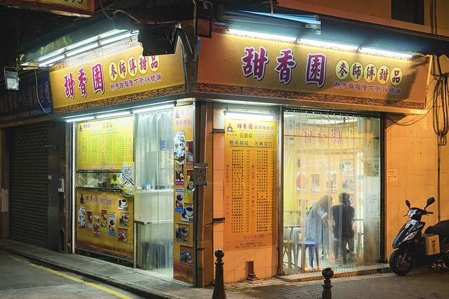 澳门的甜品店总爱营业到深夜。宵夜觉得口淡想来一碗甜品清润一下,除了杏香园外,福隆新街附近的甜香园也是一个不错的选择。相比起杏香园,甜香园店面不大,一张长桌和三张方桌就把店里的空间挤满了,但论价格这里比前者更有优势。