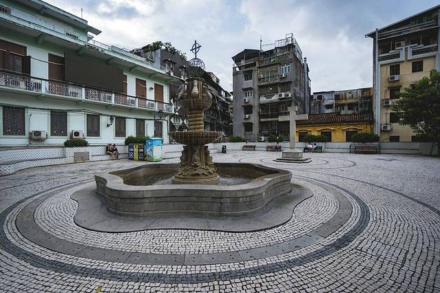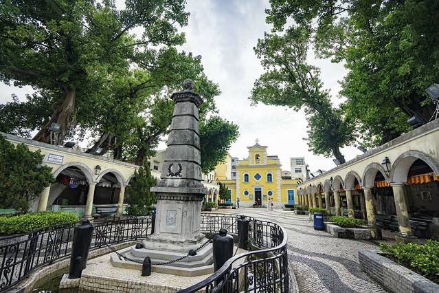 前面提到澳门历史城区包含有多个前地广场,大堂前地就是其中之一。大堂前地得名于广场上的大堂教堂,从前广场只是教堂的一块普通空地,如今已铺上澳门常见的南欧Style的黑白色砖块,并建有喷水池和十字架,拍拖和溜娃的居民,以及休息的游客令这里变得热闹不少。同时大堂前地从各个方向可同往议事亭前地、新马路、南湾大马路,可以说得上是四通八达。