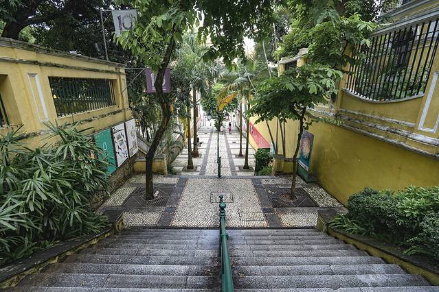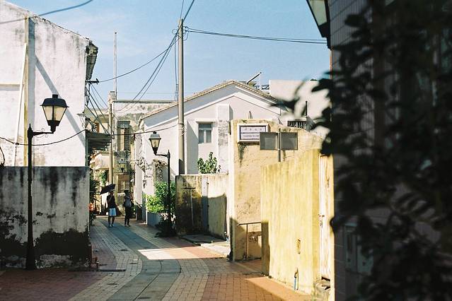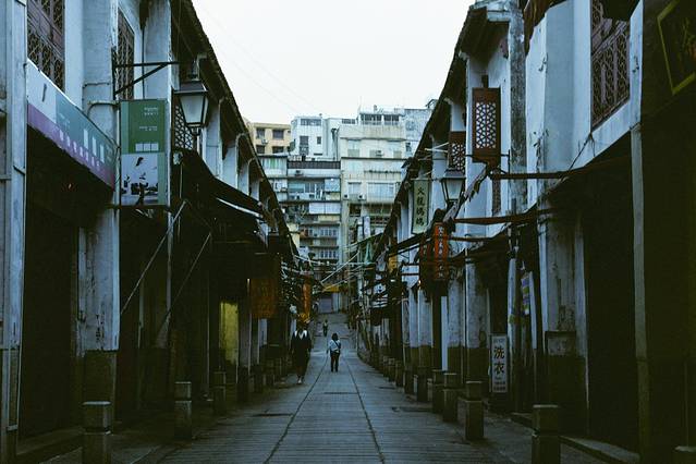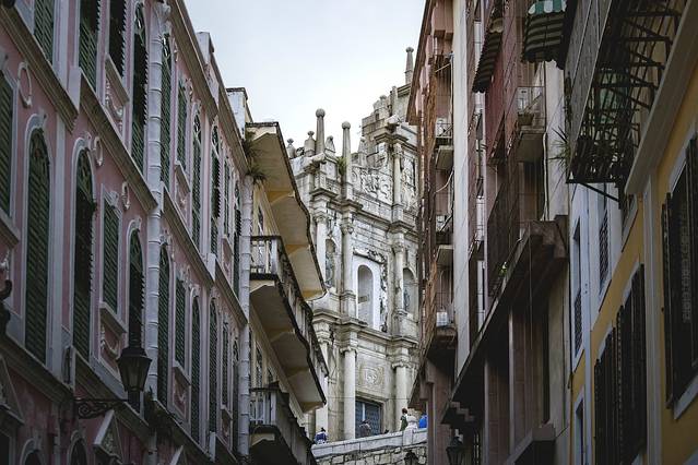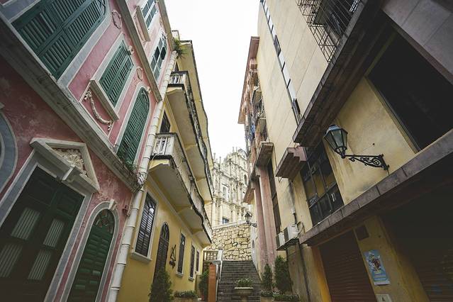 既然是澳门的地标,那么理所当然的永远人潮涌动,想要拍一张没有人的大三巴证件照一点都不容易。与其起早摸黑,倒不如在钻到附近寻找特别的角度,在牌坊附近的恋爱巷就是一个不错的地方。