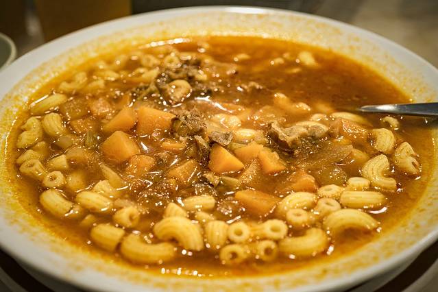 牛杂可以以串卖,10-15葡币/串,也可以按盒算,50葡币/盒,老板会帮忙搭配,牛肚、牛肠、牛肺、牛膀、牛舌、牛肝等一样不少。另外还有鱼蛋、牛百叶、西兰花、脆皮肠等可选。梓记牛肠前无古人后无来者,而明记则胜在各个部位虽无明显突出,但也没有明显短板,水准平均。
