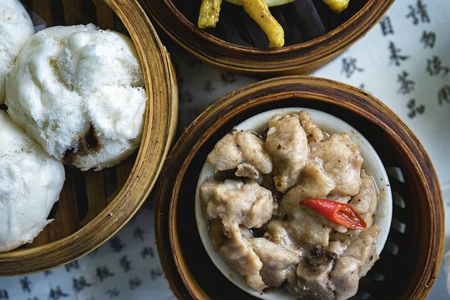 点心放在楼梯旁的手推车上自取,统一28块/笼,最后按数量结账。但对比起它的装潢,龙华茶楼出品的点心,说真心话,味道有点“朴实无华”。叉烧包皮厚馅薄,咖喱凤爪油多味淡,烧卖和牛肚只能说不过不失。唯一对得上口味的是排骨,肉嫩、肉香且肉味足。