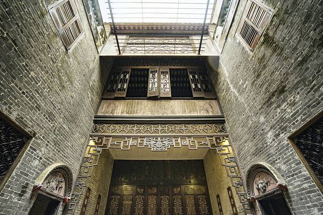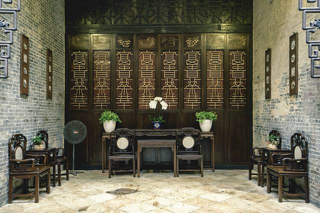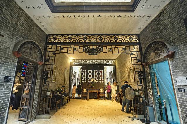 郑家大屋虽然走的是19世纪中式院落大宅的Style,但又糅合了18世纪西方古典风格的影子。屋顶、梁架、墙体彩绘、檐口浮雕,以及趟拢门和内窗等部位以中式手法表现。而西式痕迹则体现在天花处理、门楣和窗楣、外墙批荡等细节之处。一步一景,眼之所及尽显惊喜。