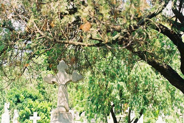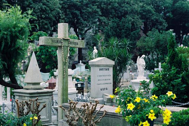 墓园内墓冢累累,虽然是先人魂归之处,但却鲜有荒凉凄戚的感觉,一片宁静祥和。其中不少各有特色的墓碑,镶嵌着天使、十字架、人物雕塑等,颇有莫斯科新圣女公墓的感觉。虽然身处闹市,却是拥有一排宁静肃穆,再辅以铺排其中的花卉、树木、丛草,不仅予灵魂以安息,也予生人以安宁。