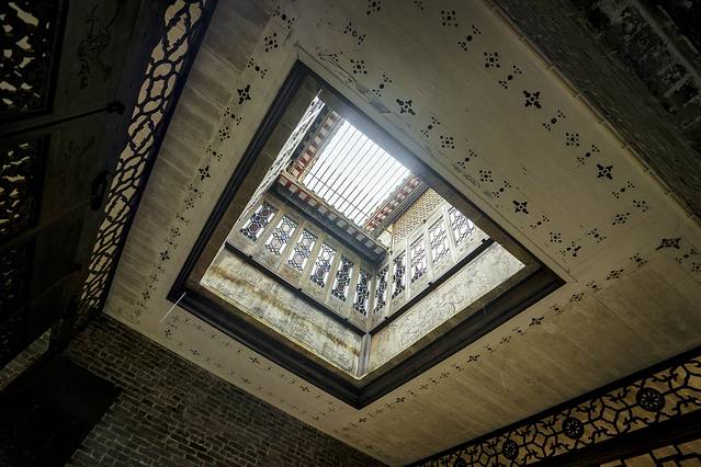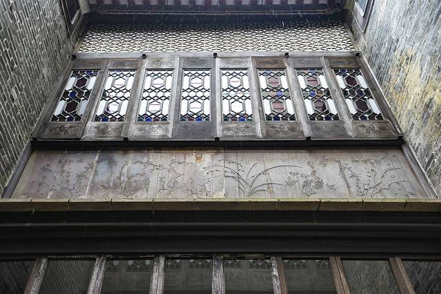 站在天井下,千万记得要抛弃手机做个抬头族,满洲窗下的花鸟、植物等浮雕栩栩如生。虽然卢家大屋没有华丽丽的装饰,但每个别出心裁的角落和精致的细节,都显示出大宅的雅致味道。