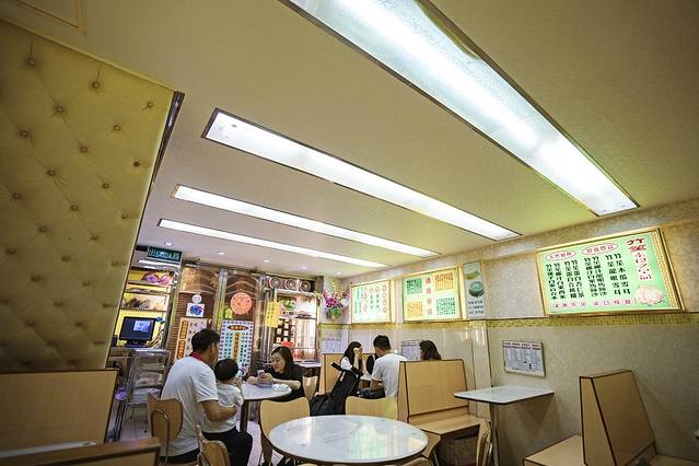 冰室无论是门面还是店内的装潢都充满怀旧感,这也是老字号特色,无论是地上的纸皮石、红皮座椅卡座,还是用以盛载雪糕的透明玻璃盘,都让人在推门瞬间有一种回到小时候的错觉。