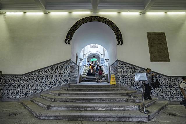 关于大三巴的背后的故事我这里就不再赘述了,相比之下,牌坊前壁的装饰和雕刻更加值得玩味。这个牌坊高约30米,为文艺复兴时期的巴洛克式建筑,但却带有明显的东方元素。牌坊分为五层,底下两层为等长矩形,三到五层则形成一个三角形。仔细观察,每一层的雕刻元素都不尽相同,既有代表着西方的十字架,铜鸽,圣婴、圣母、圣徒雕像等元素,也有代表着中国的牡丹、代表日本的菊花等东方要素。展现西方建筑风格的同时,细节之处也见东方文化端倪,中西结合的意味浓郁,每次我经过我都不禁想象,如果教堂没被摧毁,如今仍完好无缺地矗立在我面前那该有多壮观。