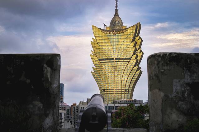 大炮台当然少不了有大炮,顶层平台上四周每个孔口都放置有一枚枪口对外的黑色大炮,当年防御工事的作用表露无遗。围绕顶部转一圈,很容易就能发现一枚大炮正对着新葡京赌场的有趣画面。从风水的角度讲,被大炮怼着肯定是不吉利的,尤其是对赌场来说,会让赌徒感到一种“被炮轰”的感觉。事实上,澳门赌场的选址设计十分讲究风水,以求达到滴水不外漏的境界。新葡京的设计师将大炮正对着的外立面设计成烟花盛开的状态,寓意“花开富贵”。将不利暗示转变为有利暗示,这也是其他澳门赌场设计所蕴含的大风水学问。