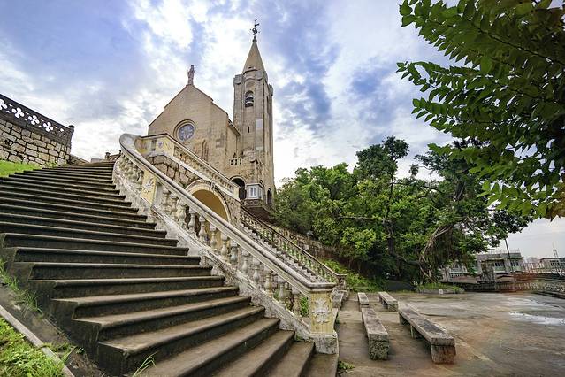 主教山小堂我最喜欢的地方,就是平台到岩洞的环抱左右的石阶梯。庄严又不失浪漫,使这里成了拍婚纱照和电视剧取景的热门地。