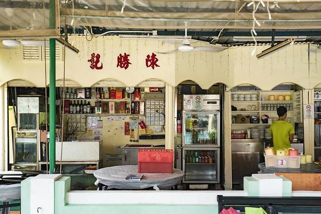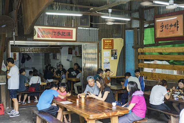 因为我小时候不住这边,所以连我也没有想到菜市场中会隐藏着这样一个熟食中心。一排十家熟食档口相邻环绕,档口外是一排金拱门式的共用座椅,下午时段几乎已经满员了。而大名鼎鼎的梓记牛杂就在出升降梯后的第一家。