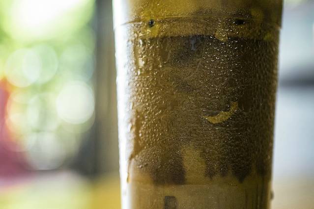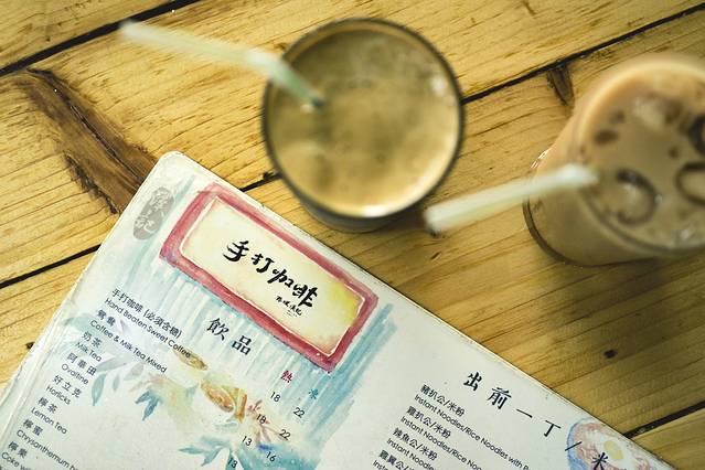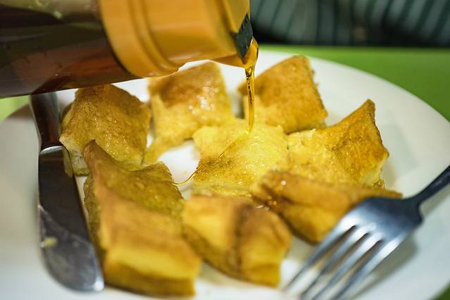 下午茶餐的西多士也值得一尝。西多士被炸得金黄,端上来时表面还下了一小块黄油。西多士温热的表面将黄油逐渐融化,并且慢慢渗透到里面。将西多士切成块以后,再往表面浇上蜜糖,甜而不腻。最后再配上一杯冰的阿华田,实在是对暴走了一上午的自己最好的奖赏。
