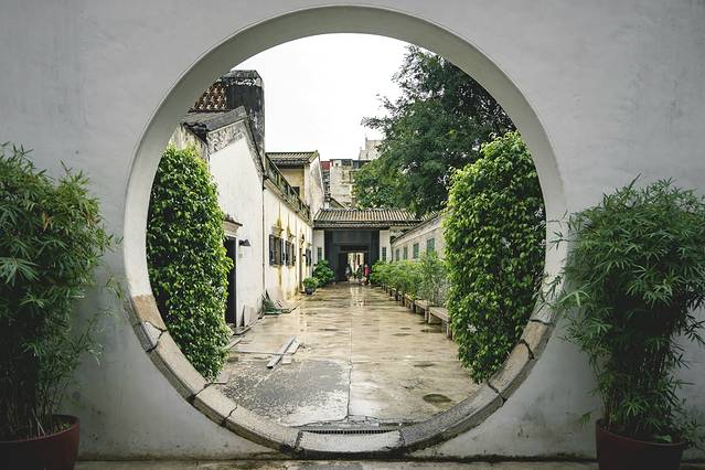 相比起暴露于人流中的玫瑰堂,藏匿在大堂巷中的卢家大屋显得稍稍有点低调,但我觉得后者更为值得细细品味。卢家大屋是澳门20世纪商人卢华绍家族的住宅。除了大屋外,如今位于荷兰园大马路的卢廉若公园也是其私家花园。卢家大屋又叫金玉堂,约落成于19世纪90年代,是澳门为数不多的保存较为完好的中式大宅。