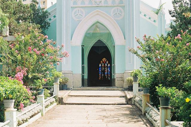 旧西洋坟场内还有一座晚于墓园20年设置的圣味基小堂,是澳门保存得最完好的建筑之一。教堂为哥德复兴式风格,粉绿色外墙配以彩色玻璃,一种小清新的感觉扑面而来。