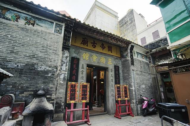 与胜利茶餐室两街之隔的营地街市对面,藏匿着一座毫不起眼的古庙——关帝古庙。虽然不起眼,但它在2005年就以澳门历史城区的组成部分别列入世界文化遗产名录内。