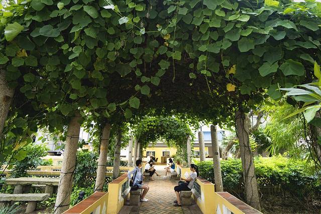 婆仔屋面积一千多平米,由左中右三座建筑组成,共有30多个房间,被用作艺术工作室以及展览厅。院落里还有书房和音乐室,提供艺术书刊和音乐CD售卖、展示和收藏。另外还有咖啡馆、小百货店等文创园区的标配。在周末,婆仔屋的院子里不时还会举行茶座、露天音乐会、露天电影院等活动。