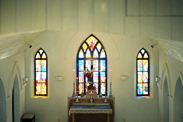 大堂建于16世纪,当时只是一座小小的木质教堂,经年累月的岁月侵蚀使教堂破旧不堪,19世纪时通过集众捐款修葺,才成了今天的规模。大堂外观虽简洁但不失大气典雅,尤其需要注意的是中间三个拱门上的三块画有宗教内容的彩绘玻璃,在阳光的照耀下特别显得柔美。