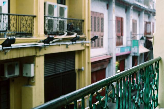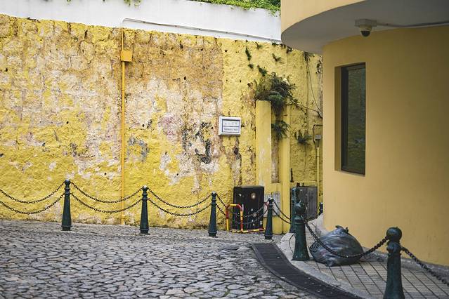 无意中翻到两张不同年份拍的大三巴巷的照片,这是上山的必经之路。电箱和栏杆都粉刷一新,唯独亮黄色的墙壁外立面逐渐剥落。