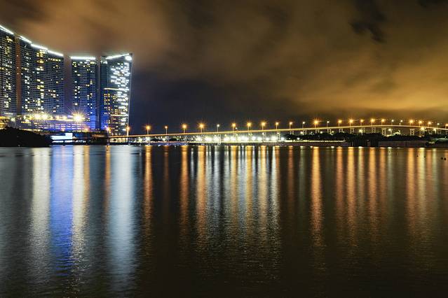 南湾湖是澳门半岛的一个人工湖,是每年端午期间举办澳门国际龙舟赛的地方,湖上还会定期举行音乐喷泉,但我的目标不是湖,而是在湖边的海湾独木舟会往南的一个摄影机位。这里可以以湖水作前景,拍到新八佰伴、Sky21、新旧葡京等地标建筑同框的画面,日出、日落、夜景都是不错的选择,最关键的是人少机位多!人少机位多!人少机位多!(重要的话说三遍)