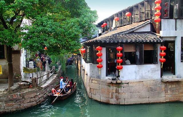 甪直(Lùzhí)面貌古朴,风情幽逸,这里遍布小桥河水,房屋临河而建。相较于周庄这里的人就很少了,临街的小商店生意不是那么火爆,饭馆非常划算,通常不用花很多钱能品尝到最道地的美食。
