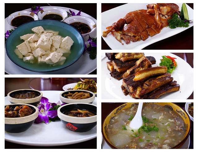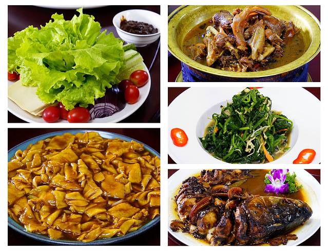 走进山庄农家院,客房门匾各不相同:老赵家,老张家……每间客房里都坐满了人,看起来这里的美食的确吸引人。时候不长,一桌丰盛的农家饭上桌。色彩鲜艳的大拌菜,新鲜的食材;嫩白的豆腐,刚从磨坊出来;醋溜饹馇吸引着我们的视线。饹馇是唐山的名食之一,用绿豆面制作而成。在当地,人们认为不吃饹馇宴,不算到唐山。提起饹馇名称的来历还有一段典故。据说清王朝在遵化建东陵以后,守陵人为讨得皇家的欢心,就把这一特产送进了皇宫。慈禧太后吃饭有个习惯,端上来的菜最多只夹两口就撤下。有一次,御膳房端上了醋熘饹馇,她一看没有吃过,问了声:“这是什么菜呀?”太监赶忙回答:“还没起名字呢,请老佛爷赐个名吧。”慈禧太后一边听一边吃了两口,太监就忙着往下撤。谁知,慈禧太后还没有吃够,就说了句“搁着”吧。太监以为这是太后赐的菜名,马上传下去:“老佛爷赐此菜名为‘饹馇’。”饹馇与搁着谐音,从此以后,饹馇的叫法便在民间流传至今。
