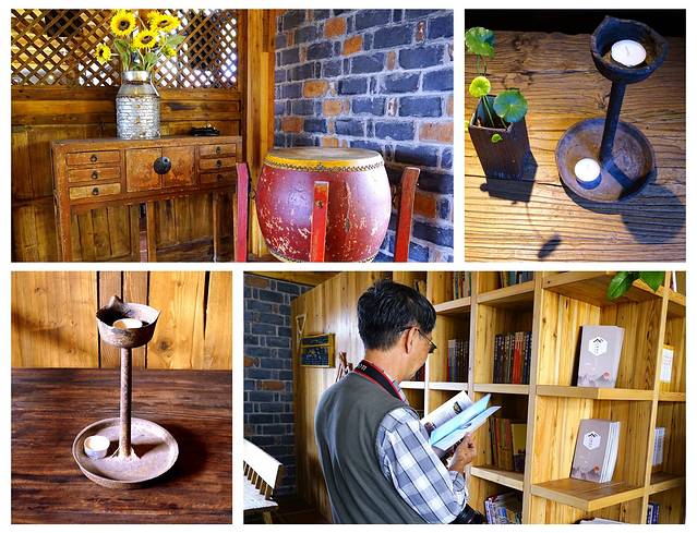 红领巾客栈是村里将废旧小学在原有的基础上改造而成,保留了学校主体建筑,增添了校园元素。让曾经有过这样一段少年先锋队队员的我们有一种久违的亲切感。门板做的桌子上几盏古老的煤油灯,一幅拾麦穗的老照片。一台老电视,一面班驳的大鼓,这些已经尘封的记忆瞬间被打开,儿时的一幕幕校园生活就这样让我沉浸其中……客栈的一角又融入了现代时尚气息,辟为乡村咖啡厅。游人可以在这里要一杯咖啡,望着街景,细细地品尝生活的记忆。