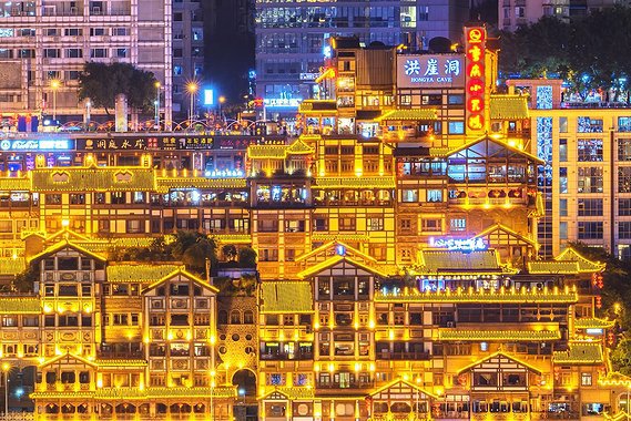 大重庆的景点在抖音上真的非常火,尤其是洪崖洞,现在俨然变成了抖音爱好者的聚集地,洪崖洞夜景的视频特别多。层层叠叠的楼宇,像极了《千与千寻》里婆婆的汤屋,灯火辉煌,万家璀璨,十分美妙。