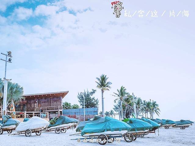 沙滩平缓,海水退潮快,涨潮慢,这里也是特别理想的海滨浴场和海上运动场所。游泳时泳装、沙滩鞋之类的装备最好自己准备好,沙滩附近也有小店可以租售。景区还设有摩托艇、沙滩车等收费的娱乐项目,还有沙滩椅可以租借,时间充裕的话,可以傍晚在海边一直躺到太阳下山 ,惬意得很。