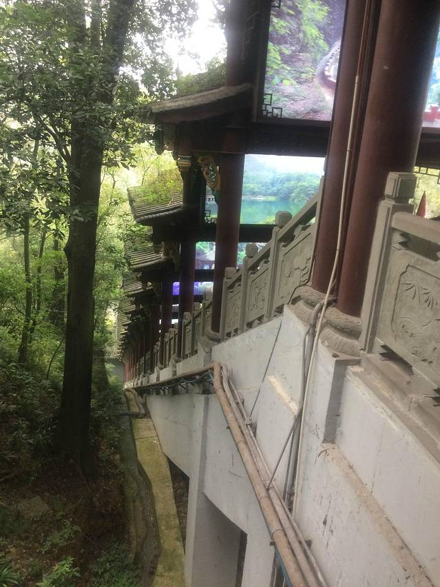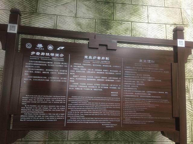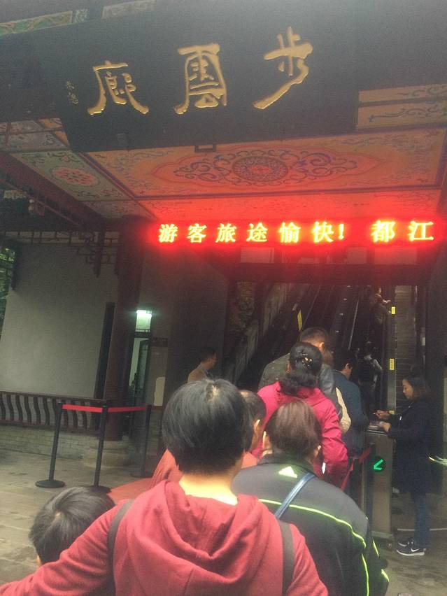 跟着大巴的导游,上了步云廊扶梯,到达玉垒阁。每位四十元扶梯票。全长128米。两头还得自己爬上去。