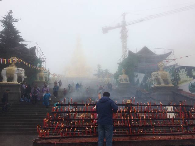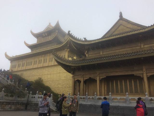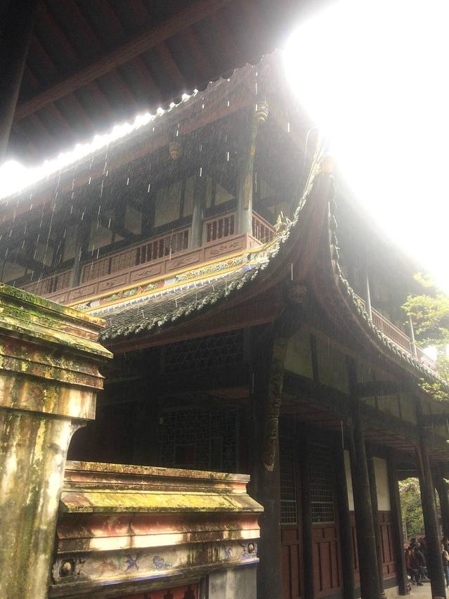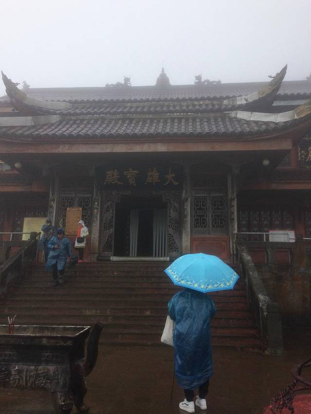 天气好的时候能看到佛光,还有云海。我们来的这天下雨,到金顶的时候雨是时停时下。
