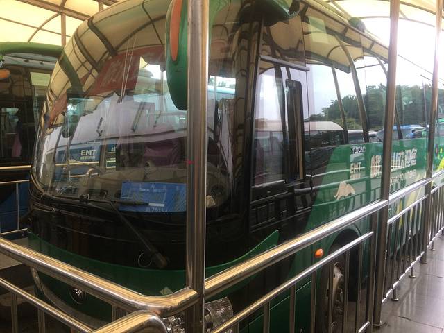 下了高铁出门,外面就有4路车到都江堰景区正大门,每位两元。那会已经买好大巴票了,所以就没坐公交。大巴是到北面的小门的,每位10元。大致行车20分钟。