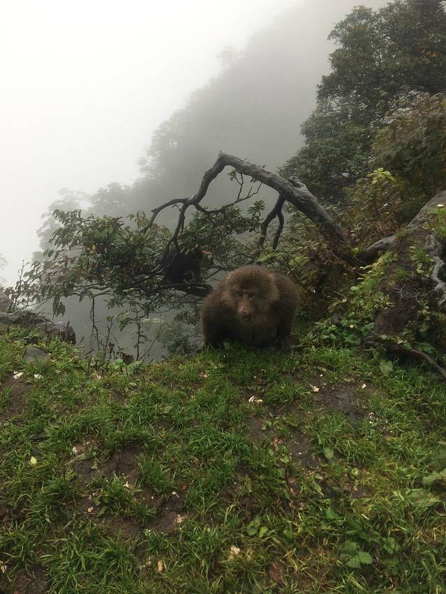 下山的时候遇到猴子了,我还分了一半的红薯给他们。