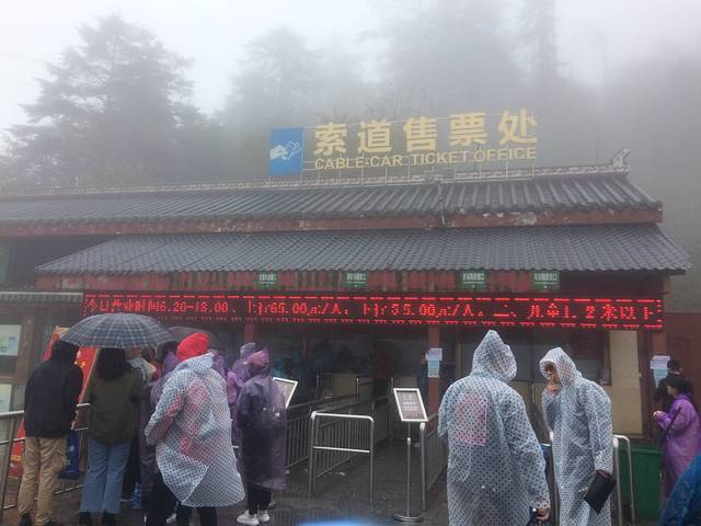 接引殿左边是索道售票处,可以选择买或者不买。在汽车站的时候也能买索道票,不过那会没想好要不要做索道上去,所以没买。到这里还排了一小会队。