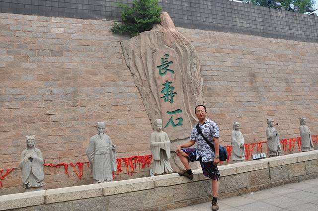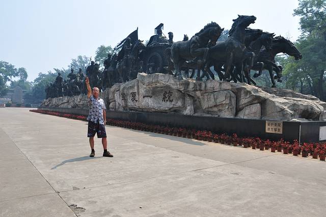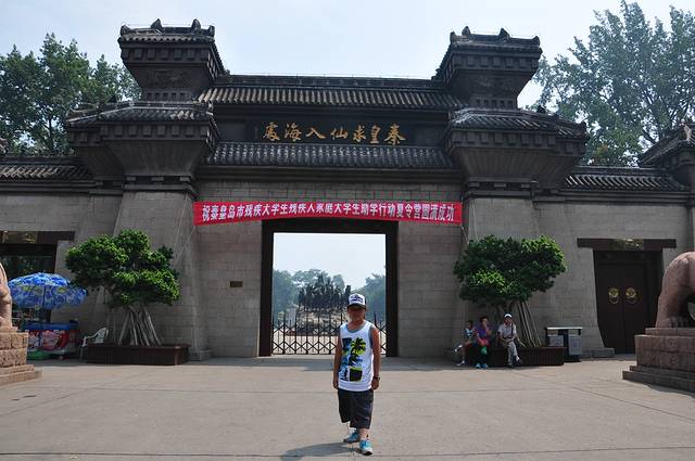 公元前221年秦始皇统一中国后,曾先后五次出巡,其中公元前215年第三次东巡到碣石,派燕人卢生求羡门高誓,命大臣李斯刻“竭石门辞”,即矗立海边的喝石刻石。重刻的稿石系采用花岗岩自然石块,高约5.1米,宽2.9米,厚2米。始皇一生喜爱巡游,在他统治全国后的十余年里;曾五次出巡“亲巡天下,周览远方”。秦始皇每次出巡时,都有隆重的车仗和庞大的车队,场面非常壮观,现在大家所看到的这组群雕以秦始皇出巡时声势浩大的历史场面,用生动、形象的始皇像、车马及人物造型,再现了秦始皇华夏一统,千古一帝的风采,它是由32个人、20匹马、2辆车组成的,此群雕长40米、宽5米、高6.6米,是景区继秦始皇巨型雕像之后的又一个标志性建筑。求仙苑内百草丛生,百花争艳,古碑林立;秦皇井、祈寿亭、升仙台等源于美丽、神奇的传说;望海长廊是为秦皇求仙入海的童男童女的亲人眺望、祈盼的场所;凄美的历史让人回味。配以碧清的湖水,白色的亭廊,构成了一幅水陆相连的美丽图画。阙门产生于西周时期,秦汉时代在城门、宫殿前或祠庙前都建有阙门。据说阙门是“天子号令赏罚所由出也”,也就是悬挂法令、布告用以昭示国人的地方,而祠庙、居室前的阔是“装饰、别尊卑”,就是说:阙是一种标志,表明宫殿、居室、神祠及坟墓的范围,人臣到此必须肃然起敬。