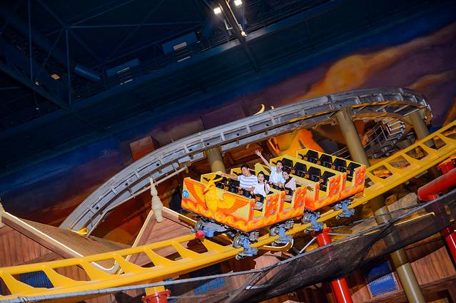 最后大boss来了——凤鸟历险。来了游乐园怎么能不坐过山车呢,所以这次我和我的朋友也体验了一番。这个过山车最奇妙的一个点就是它和投影技术的完美结合,让你身临其境,这里我就不剧透太多给大家,你们一定要亲自体验一下才懂其中的玄机,嘻嘻。精彩体验当然要给五星了!