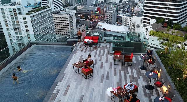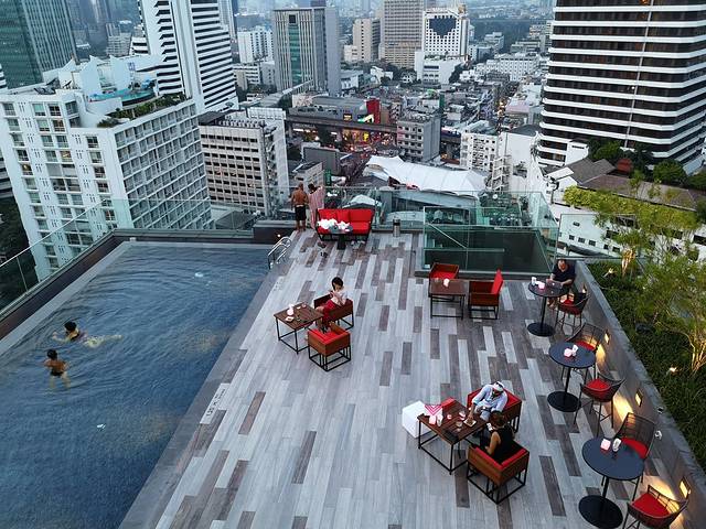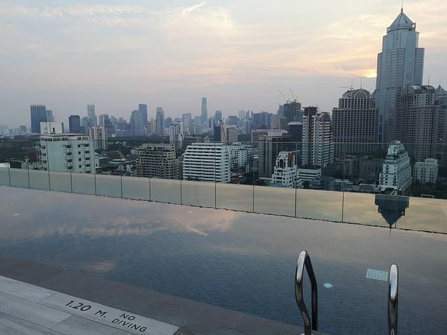 在酒店的24楼有高空酒吧以及无边泳池,来住这家酒店的朋友一定要来打卡哟,景色超美的,特别是日落的时候。无边泳池开放时间是8:00-18:00,酒吧的话是晚上18:00开始营业,游完泳洗个澡、换个衣服就可以在高空酒吧欣赏美丽的曼谷夜景啦。
