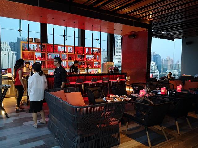 在酒店24楼的高空酒吧叫Red Square rooftop bar,是酒店自营的酒吧,这里有来自世界各地的伏特加还有鸡尾酒,推荐的是暹罗天使、血色玛丽等。除了酒之外还有一些好吃的下酒菜,有冷盘,澳式红酒烩牛肉,碳烤虎虾还有小虾堡等等, 和朋友点了几个特色的菜还有推荐的鸡尾酒,总的来说味道还是不错的,食物非常适合和酒一起吃。