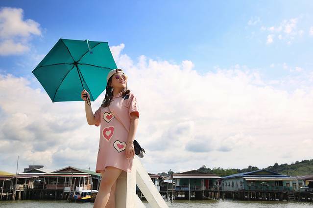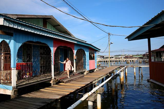 七彩水上屋如迷宫般地矗立在文莱河上,整个村子所有的建筑都是通过桩子打在河床上的。