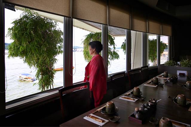 边吃边看船舶摆渡载客,也是一种放松和享受。