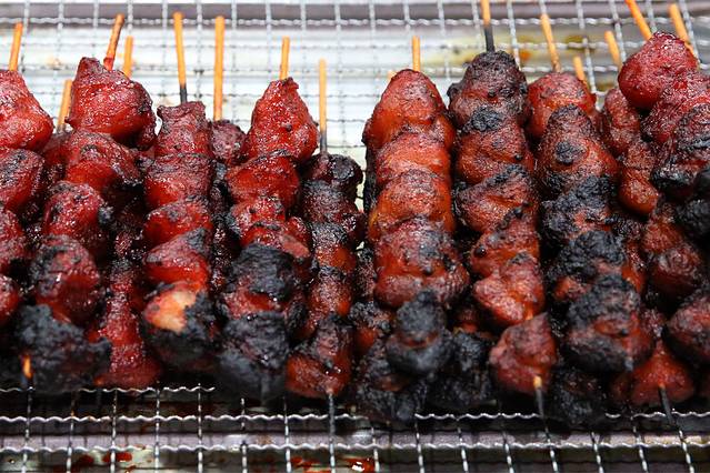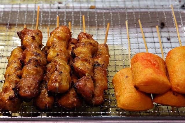 夜市招牌小吃是鸡屁股,蜜糖味的,挑了卖相不同的两家,还是下面这家的味道不错,口感香、甜、嫩。