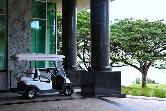 度假村很大,酒店配备有接驳车,供宾客运送行李或外出高尔夫球场。